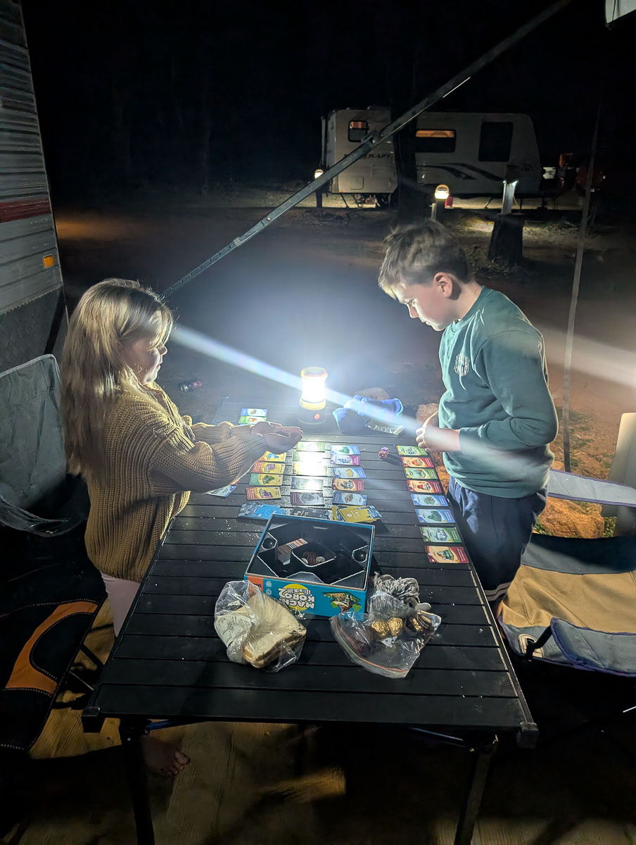 After setting up the caravan at our beautiful pull through site we had a swim, played a board game, had a nice family dinner before bed.