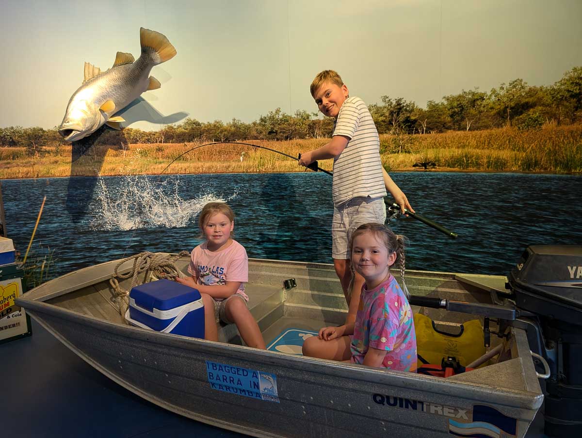 We had a very relaxed day in Karumba, a very relaxed seaside town. There is very little to do here and that suited us just fine. Everything to do in the town of 500 was on one of the various small billboards on the way in. I went for a short run to start the day off then after a slow breakfast and the kids had a play on the playground at the caravan park, we headed into Karumba town . We topped up on groceries before heading over to the single tourist attraction here: the Barramundi Discovery Centre. As far as small town attractions go, this was pretty good. They had information on the local fishing industry here, which is known for its Barramundi. The kids had a lesson in money management because they all had been given a small amount of money to spend and Brooklyn had some birthday money. They all bought an ice cream at the store earlier and had a taste for it and went looking for something in the gift shop. Of course they found something that was well out of their budget.