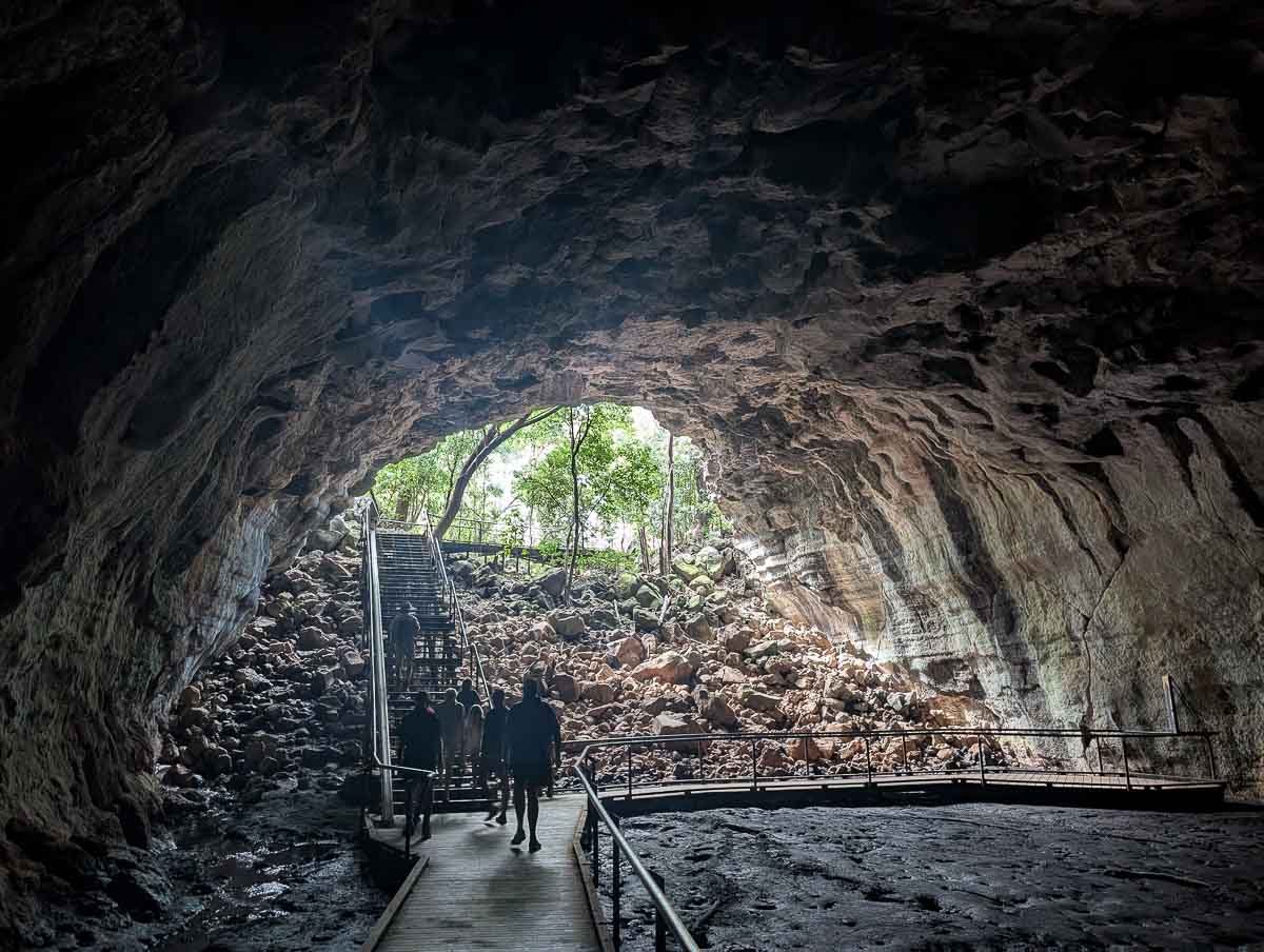 We had pre-booked a tour of the lava tubes, which took us to two underground tubes and an archway. I don’t quite remember the science but they were formed from volcanic eruptions, the most recent of which they think was around 10,000 years ago. There are 72 volcanoes in the area and not all of them are technically extint and based on the layers of basalt it looks like there have been 163 eruptions throughout the history of the area.