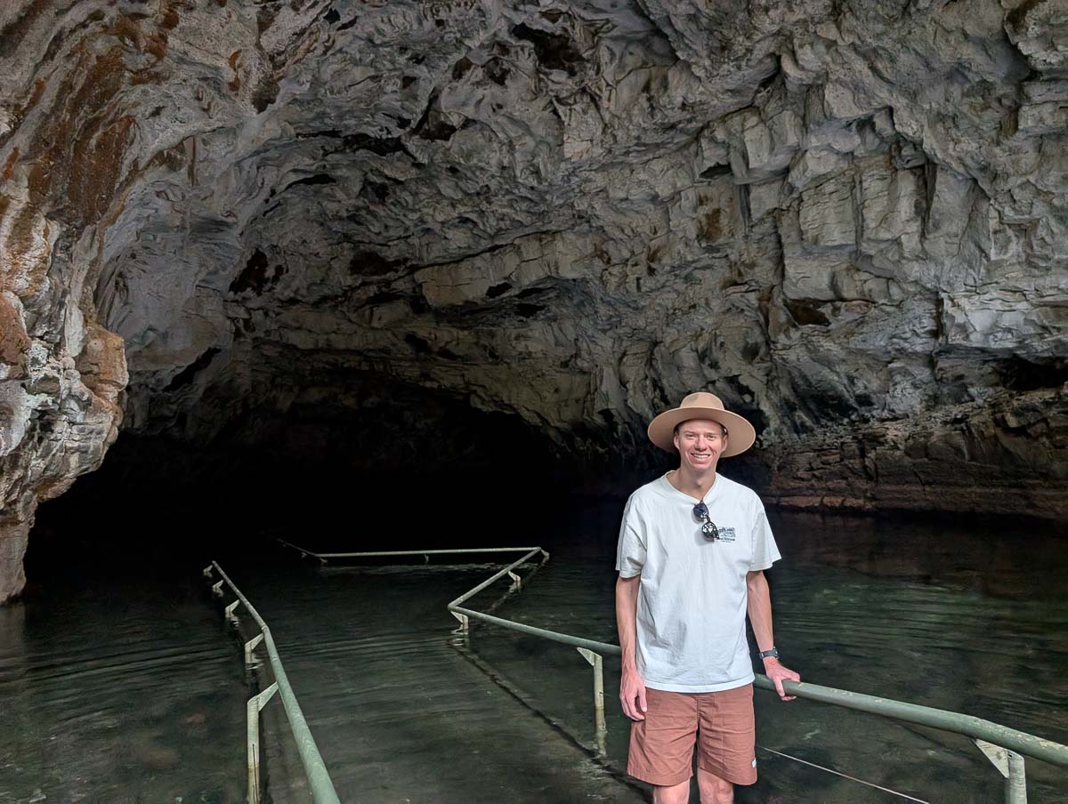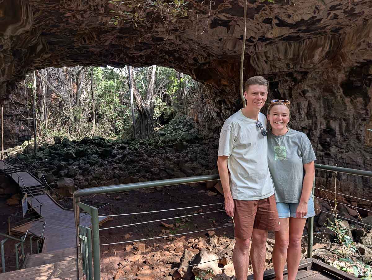 The area had 1730ml of rain this wet season, which is far above normal. The basalt in the ground is like a sponge and 70 meters deep. When the basalt fills up it can flood, and it did. The 3 archway tubes flooded for the first time on record this season and our guide took us to an underground tube that asn’t officially on the tour because he thought it was so cool that we could see it with water in it.