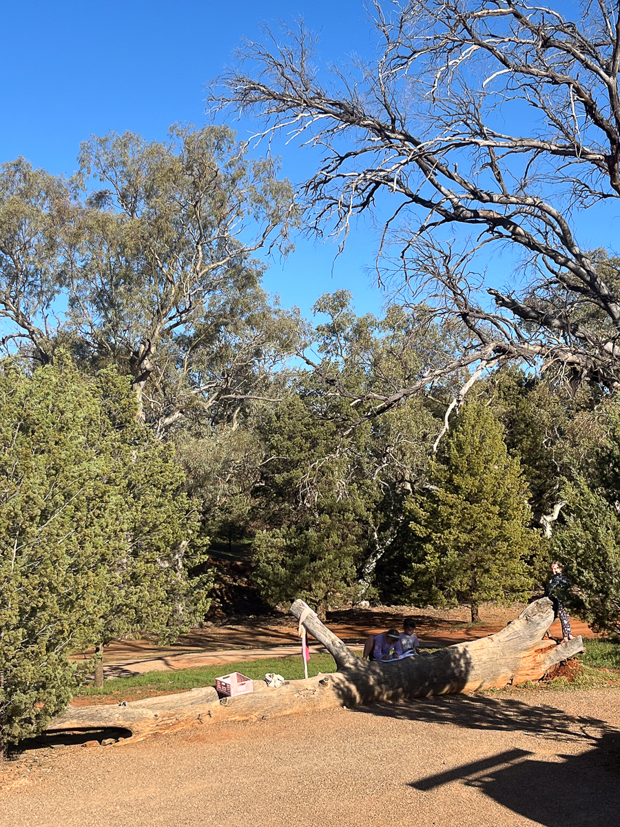 The sites here are really strange, as they are small and weirdly spaced apart. We spent way too long deciding where to pull up and in the end just decided to run the gauntlet and take up two sites each because 1 site simply wasn’t big enough for my big van plus my 4WD. We had dinner at the restaurant which turned out to be BBQ night: sausages, rissoles, chicken, and bbq prawns plus a bunch of delicious cold salads. And the kids were stoked for mousse for dessert.