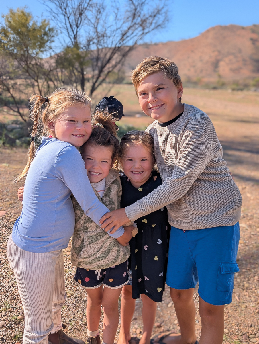 Mount Little is another sheep and cattle station bordering the National Park and is another stunning property with mountains along the fringe as far as the eye can see. They have designed a lot of activities that can help you explore the property and one of them is a pirate cave if the foot if the mountains. The kids were so excited to find this, even before we suggested anything. Matt had booked in an afternoon massage and Kynie was happy to read, clean, nap and chill at the van, so Bel, me and the 4 kids bundled into the Ranger and drove 30 minutes to the start of a walking trail, walked the 30 minutes along a creek bed to the cave.