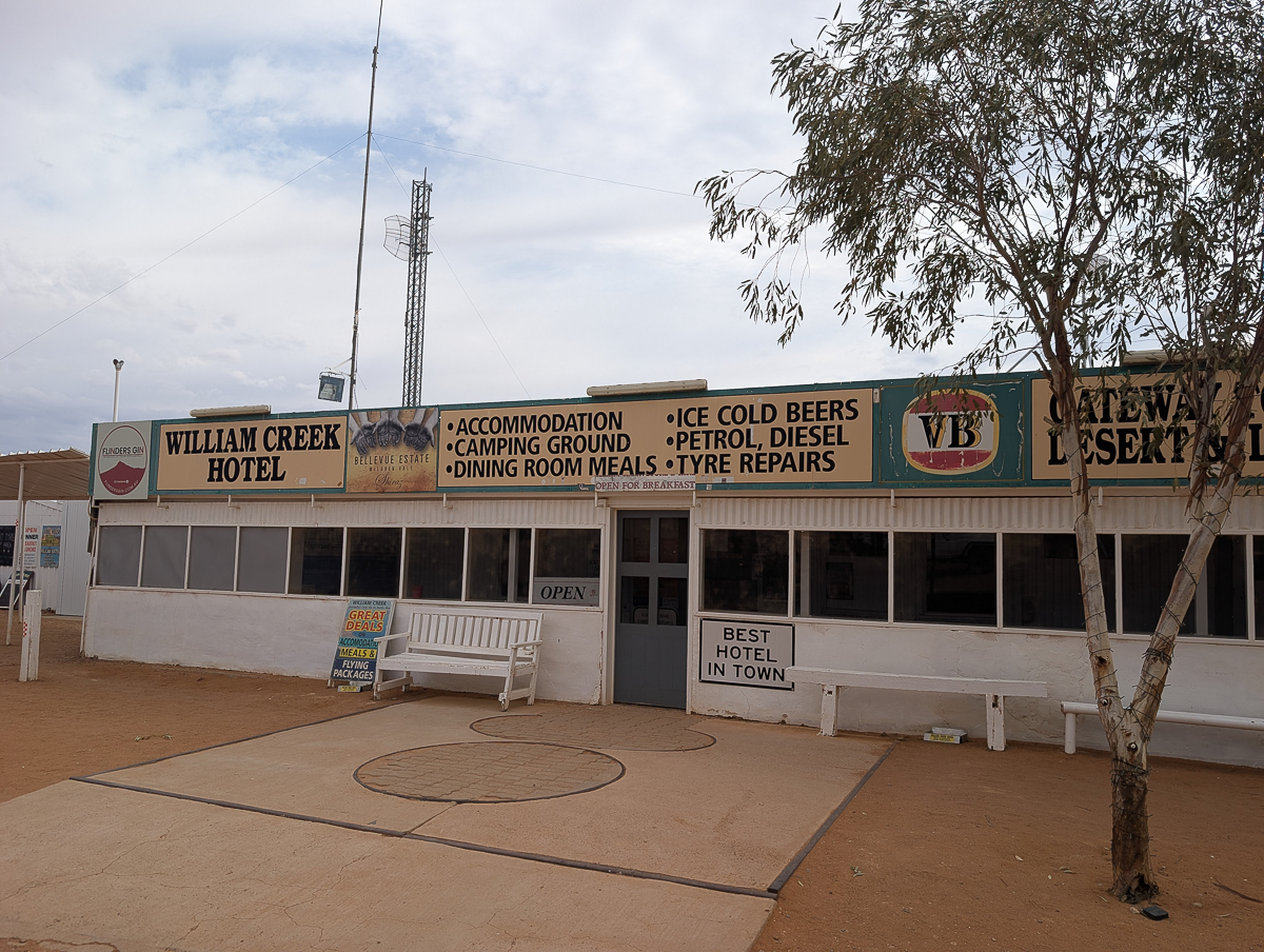 We had dinner at the William Creek Hotel, which is pretty much all the town has (plus the campground) and it was pumping. They have 2 dinner sittings and both seemed full, and the bar was 3 deep at one point. According to a sign the town has a population of 12, well I can tell you, the population of the pub tonight was well over 50.