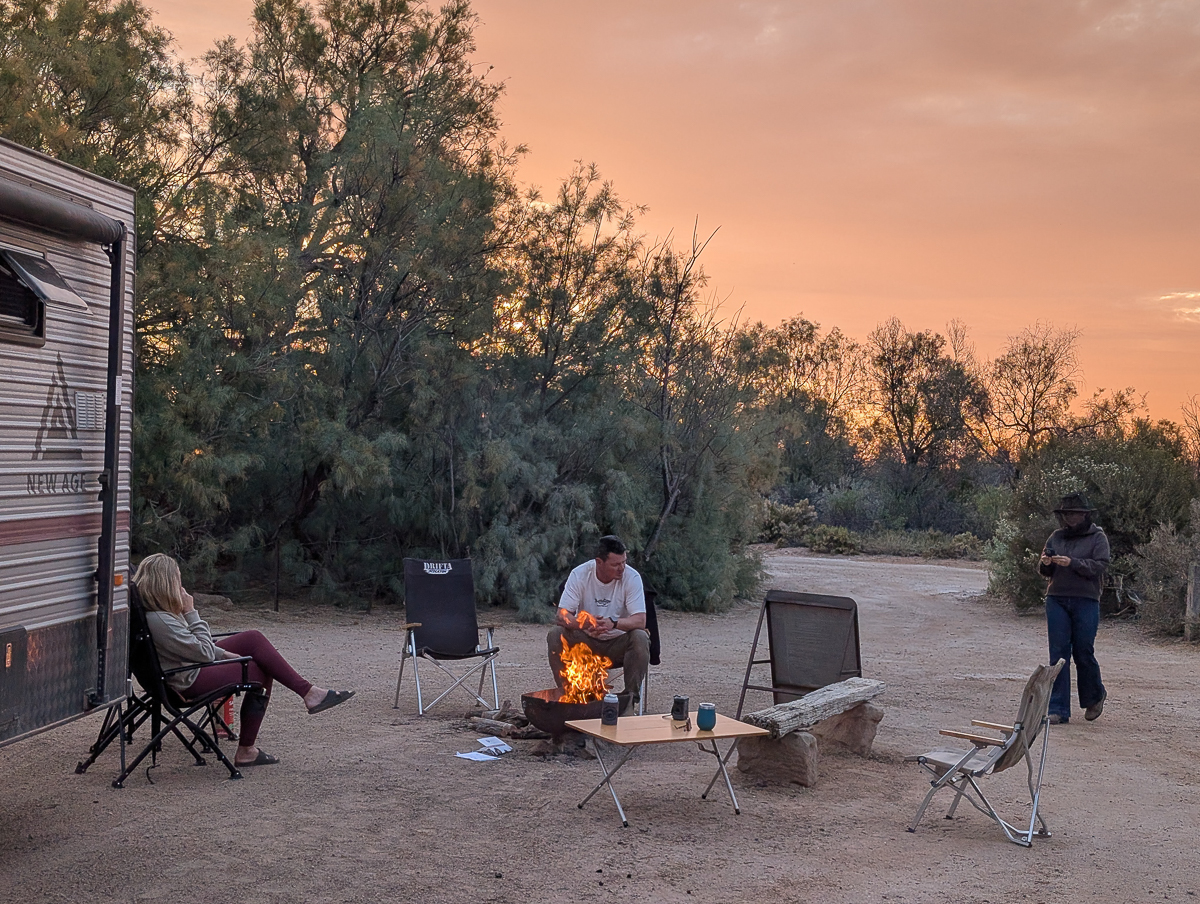 Half an hour later we finally made it to our last stop: Leigh Creek. Leigh Creek has been trending towards ghost town status as a large coal mine that was started in the 1940s shut down 10 years ago and the town has been in decline ever since. The caravan park was quite unconventional and we think we parked on old slabs of mining cottages as we could see the drains in the concrete where the bathroom probably have been.