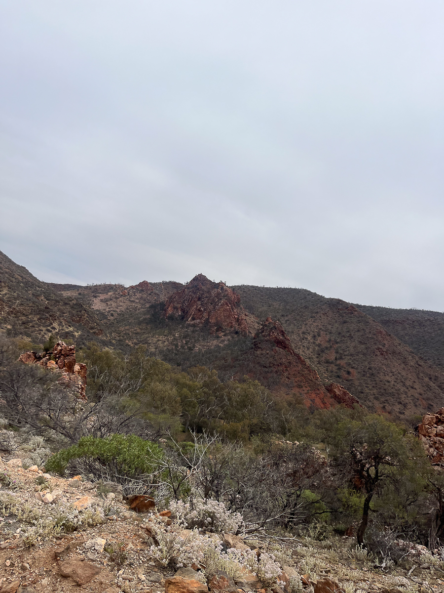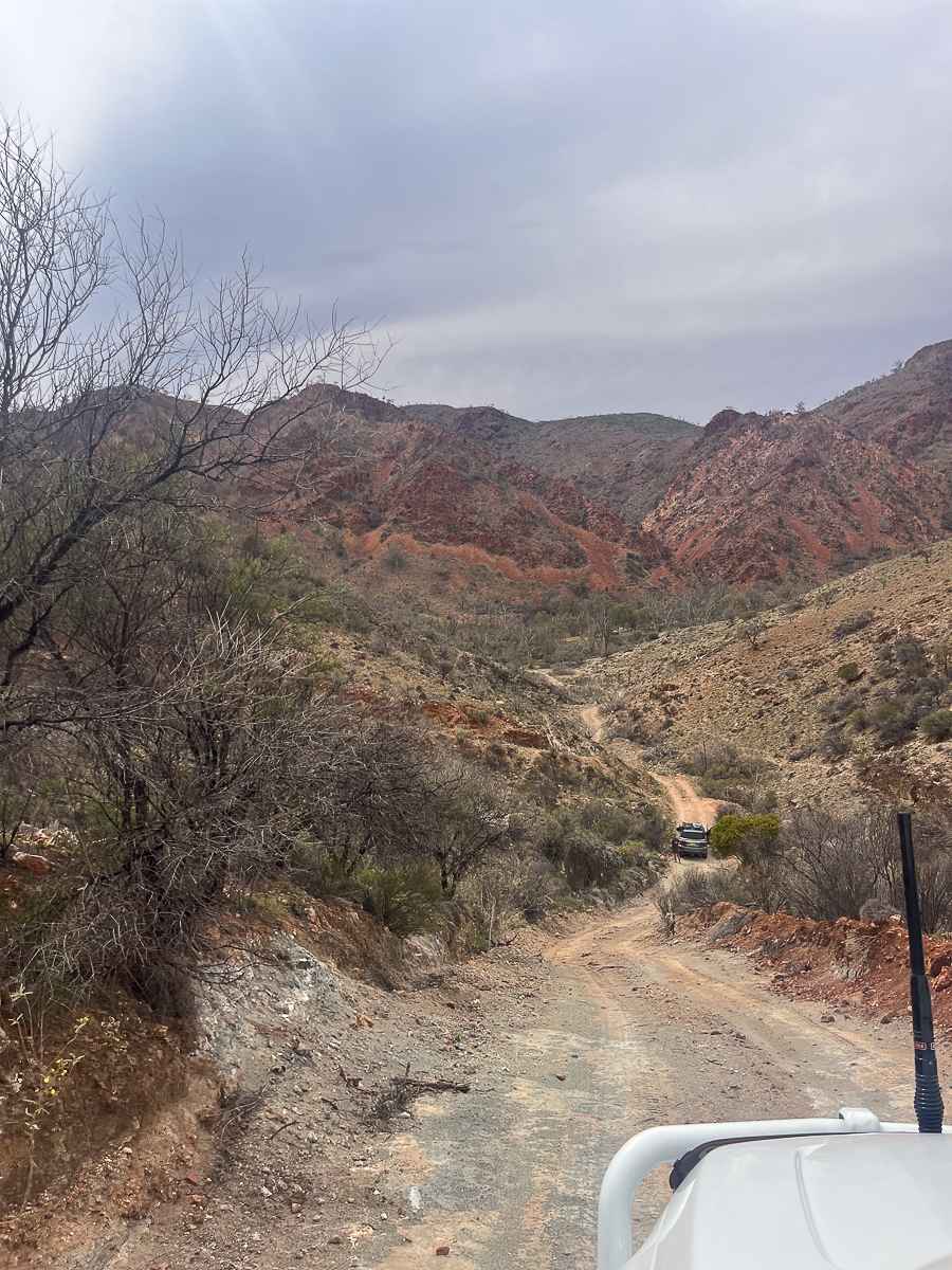 Incredibly, the weather did not affect our planned activity, which was to drive out into the mountains in some of the 4WD tracks at the Sanctuary. We chose the Echo Camp Backtrack, which is their flagship track. This, I think, means it is the most scenic, and/or the most challenging, and/or the most fun. It felt like it was probably all three. We all had so much fun navigating the turns, the step ascents and step descents; the rocky hill climbs, the dry creek bed crossings and everything in between. All the while, the scenery is magnificent because you are traversing in and around a section of the Gammon Ranges. It was incredible and so much fun and none of the photos do any of it justice so you’ll just have to take my word for it or go for yourself.