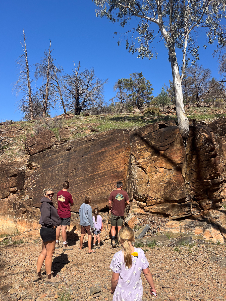 Mount Little is another sheep and cattle station bordering the National Park and is another stunning property with mountains along the fringe as far as the eye can see. They have designed a lot of activities that can help you explore the property and one of them is a pirate cave if the foot if the mountains. The kids were so excited to find this, even before we suggested anything. Matt had booked in an afternoon massage and Kynie was happy to read, clean, nap and chill at the van, so Bel, me and the 4 kids bundled into the Ranger and drove 30 minutes to the start of a walking trail, walked the 30 minutes along a creek bed to the cave.