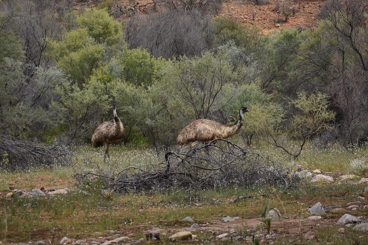 Calling something a scenic drive is a bit of a misnomer because all drives here are scenic. The Moralana scenic drive cuts across the Flinders to the north of the Elders range and south of Wilpena Pound. It was a beautiful drive with mountains on both sides, lush green grass all around, and even a few emus. After we followed the outback highway north, flanked by the mountains, to the pub.